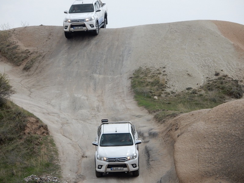 本日は普段訪れない奇岩群(らくだに見える岩)など見ました。その後、小回りの利く4WDで奇岩探索ドライブに出かけました。ドライバーはドライブテクニックで搭乗者を喜ばせる運転で喜ばせてくれました。次に行ったウチヒサールは素晴らしい景色の谷でした。ゼルベの谷では沢山の奇岩キノコ岩(ポコチン岩)を見ました。その他、ワイナリーではワインの試飲だけで終わりました。ホテルに5時半に着き、夜はとっても静かな洞窟ホテルで休みました。