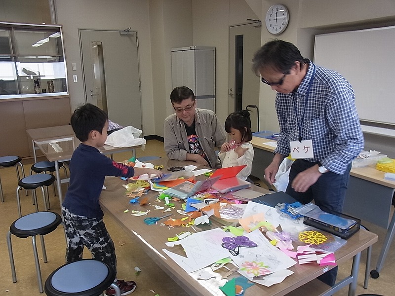 ◎ みんなで楽しくペーパークラフトを作っています。