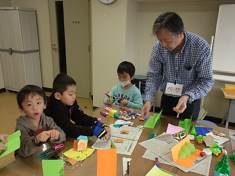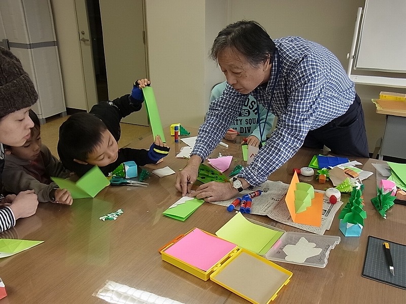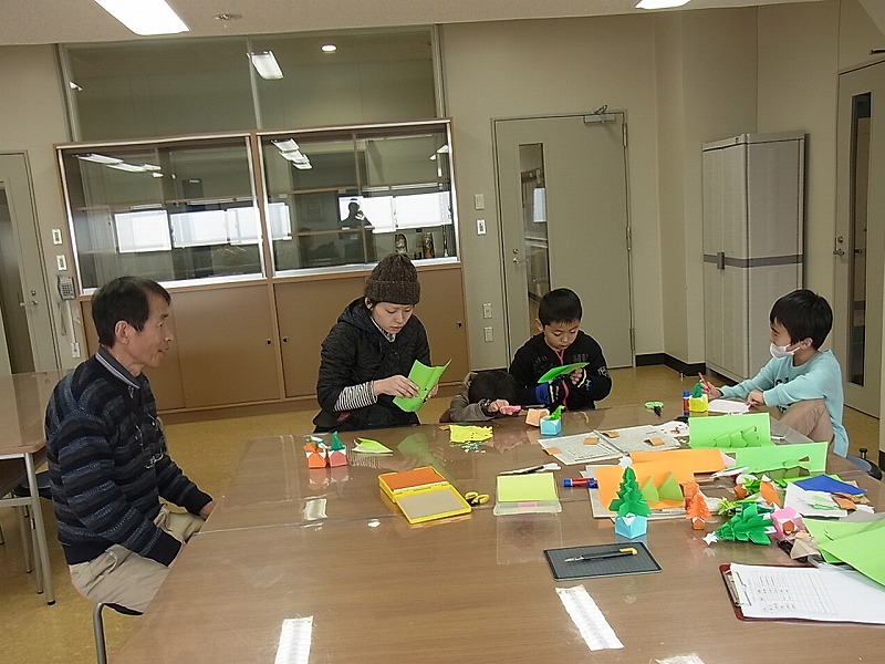 ◎ みんなで楽しくクリスマスツリーを作っています。