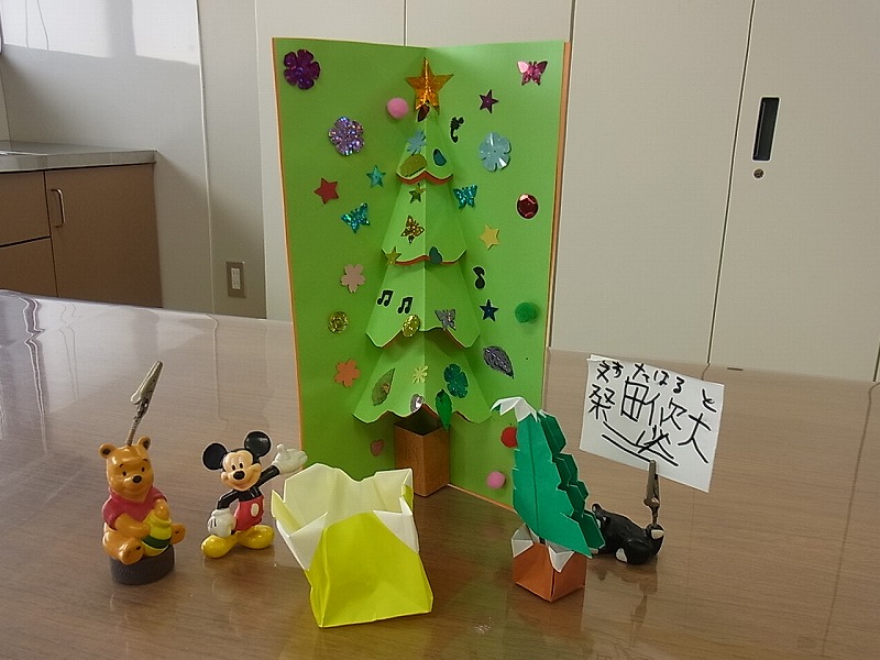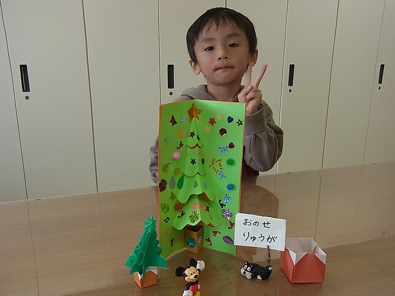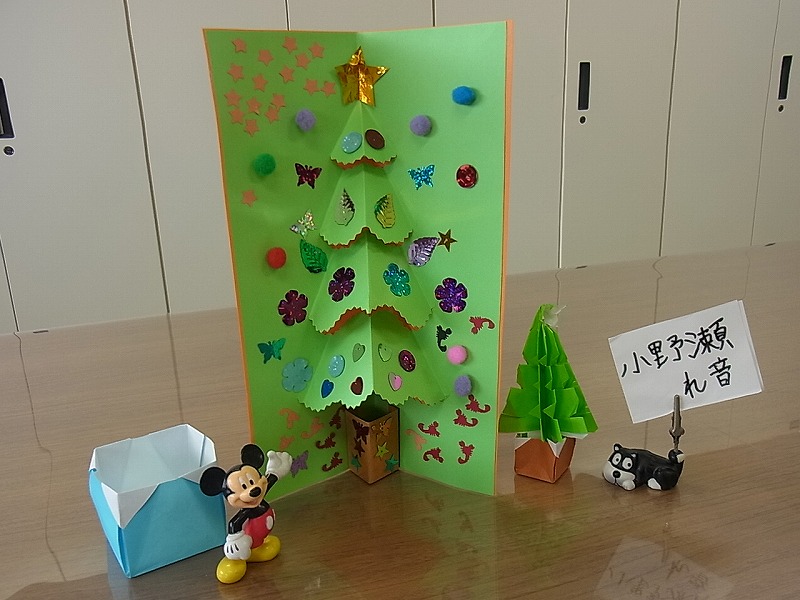 ・クリスマスツリーをオリガミと見開きペーパークラフトで作りました。