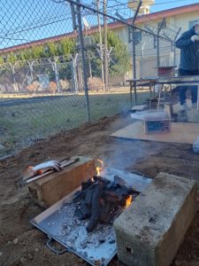 朝一番にある先生が言いました。「え~、愛敬先生は火おこしができるんですか?格好いい!」の一言から、私は一般的なBBQランチの為に、まずは校舎横で火おこしから始め、その後鉄板や網の上で牛肉、豚肉、ニンジン、なす、焼き鳥、焼き芋などを焼くことに集中。焼き上がると校舎内のホールにいる生徒や先生に手渡し。時々自分でも食す・・・てな感じ。一緒に焼いていた先生と、「第二の人生は日本語教師ですが、第三の人生は一緒に焼き鳥の屋台をやりましょうか」と話していた。でも、今日は焼き鳥の焼き方を覚えたことは収穫であった。これだから人生はやめられない!